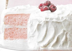 Here is a blast from the past, the Champagne Cake. This cake was extremely popular in the 50s, but you rarely see it anymore. This pretty pink cake is kept chilled until served. Refreshing and delicious, not only can you have your champagne, you can eat it too.